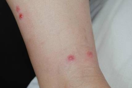 如果皮膚上出現(xiàn)兩三包叮咬痕跡、疹子排列成一直線及三角形,就可能是跳蚤的杰作,因為跳蚤叮咬時不僅只叮咬一處;