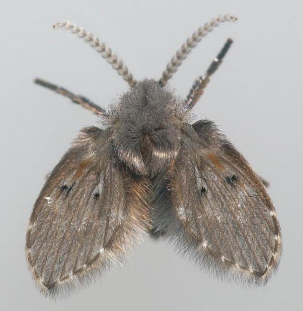 蛾蚋的幼蟲多是腐食性或糞食性,主要孳生在含有腐敗有機(jī)質(zhì)的淺水區(qū)域。正因如此,還有一個很意象的名字——地溝蠅。它們是浴室常見的滋擾性害蟲,羽化后的蛾蚋成蟲大多就近停在墻壁上。