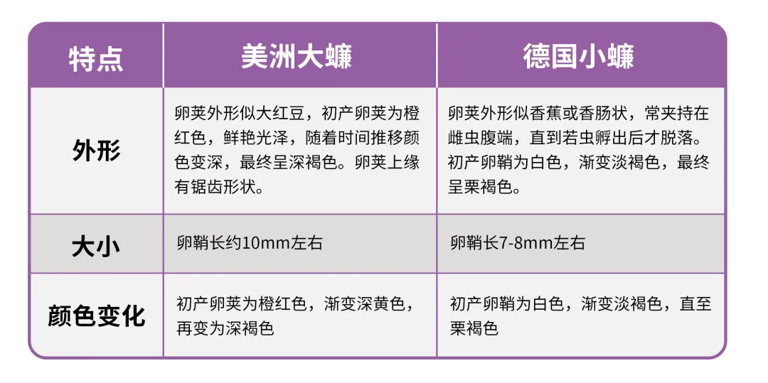 美洲大蠊和德國小蠊在卵鞘幼蟲方面存在明顯的區(qū)別: