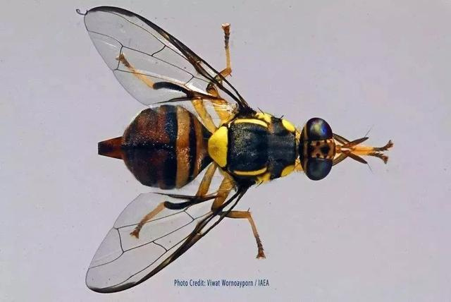 它們尾部像針一樣的尖刺,其實(shí)是產(chǎn)卵器,實(shí)蠅雌蟲(chóng)會(huì)將產(chǎn)卵管注入果實(shí)中產(chǎn)卵,卵孵化為幼蟲(chóng)后,就會(huì)在果實(shí)里。